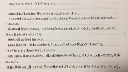 施術は週一で計四回行いました。一回目の施術のあと、効果はすぐに現れました。なんとブラの肩ひもが落ちるようになったのです。